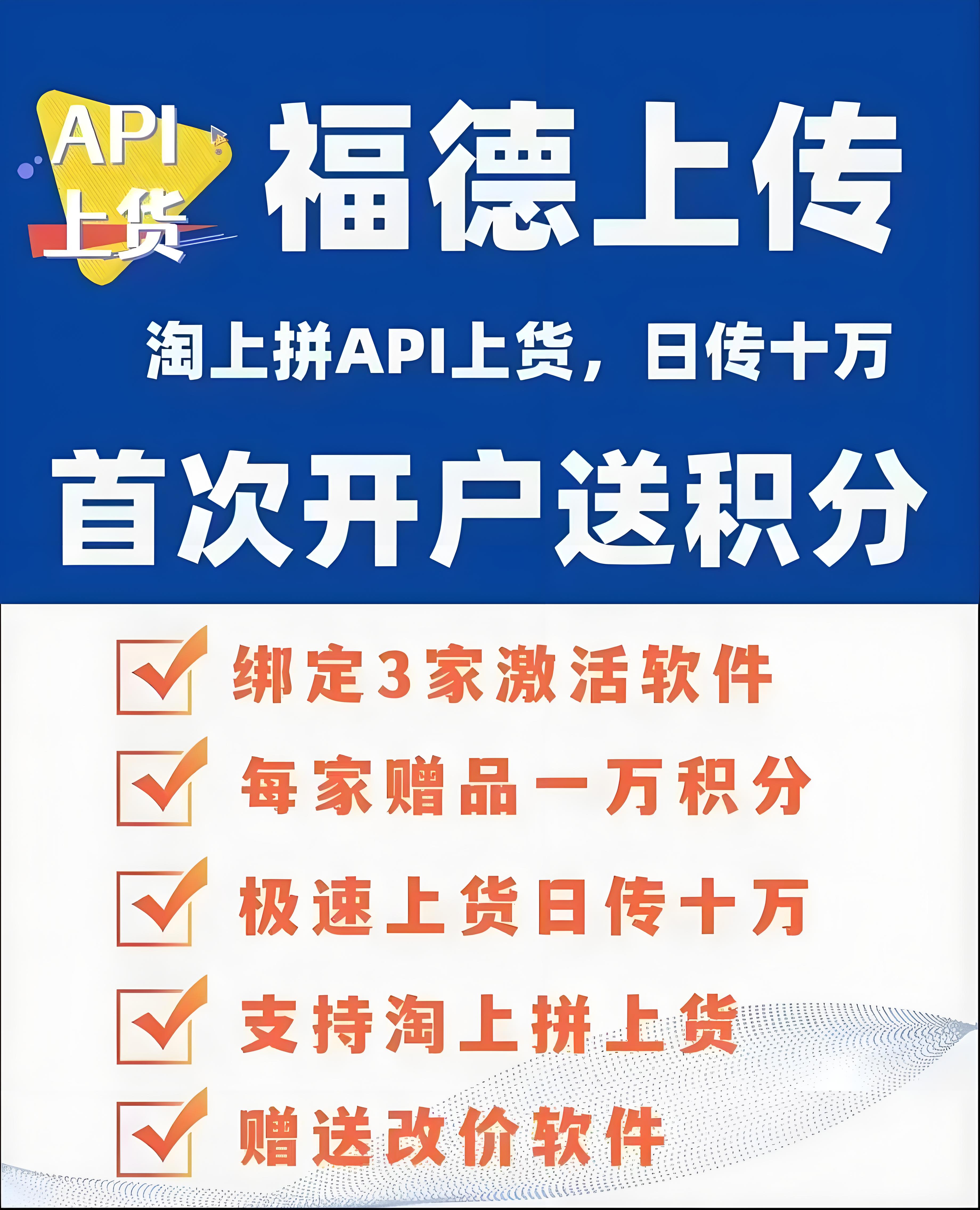 福德上货 1.支持淘上拼,淘宝商品搬到拼多多,加价8%上货 2.可五开窗口操作,绑定3个店铺就能用,一天传上万数据 3.新增1折上炮灰解析接口,发布可直通下架中 4.开放50线程上传,速度大幅提升