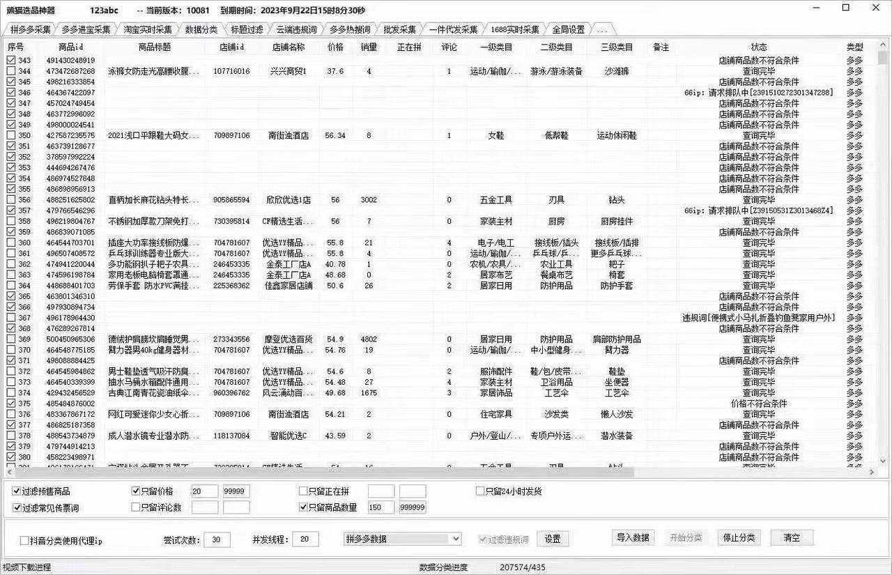 5.整店采集,可抓对手店铺商品价格/销量/评价