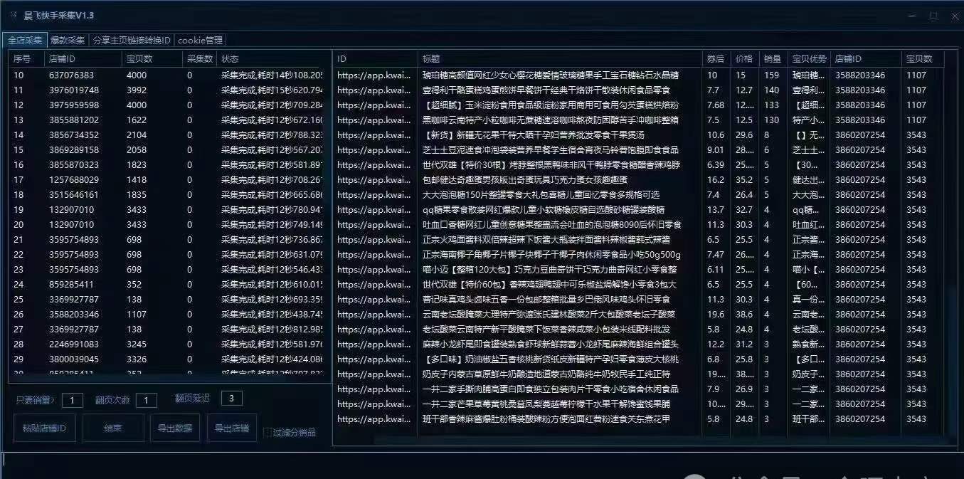 3.可通过店铺ID或分享的主页链接采集整店,并转换链接为商品ID
