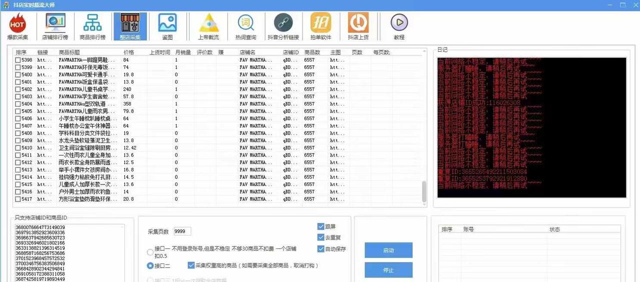 4.整店采集:用店铺ID或商品ID整店抓商品,双接口支持,提取价格销量更稳