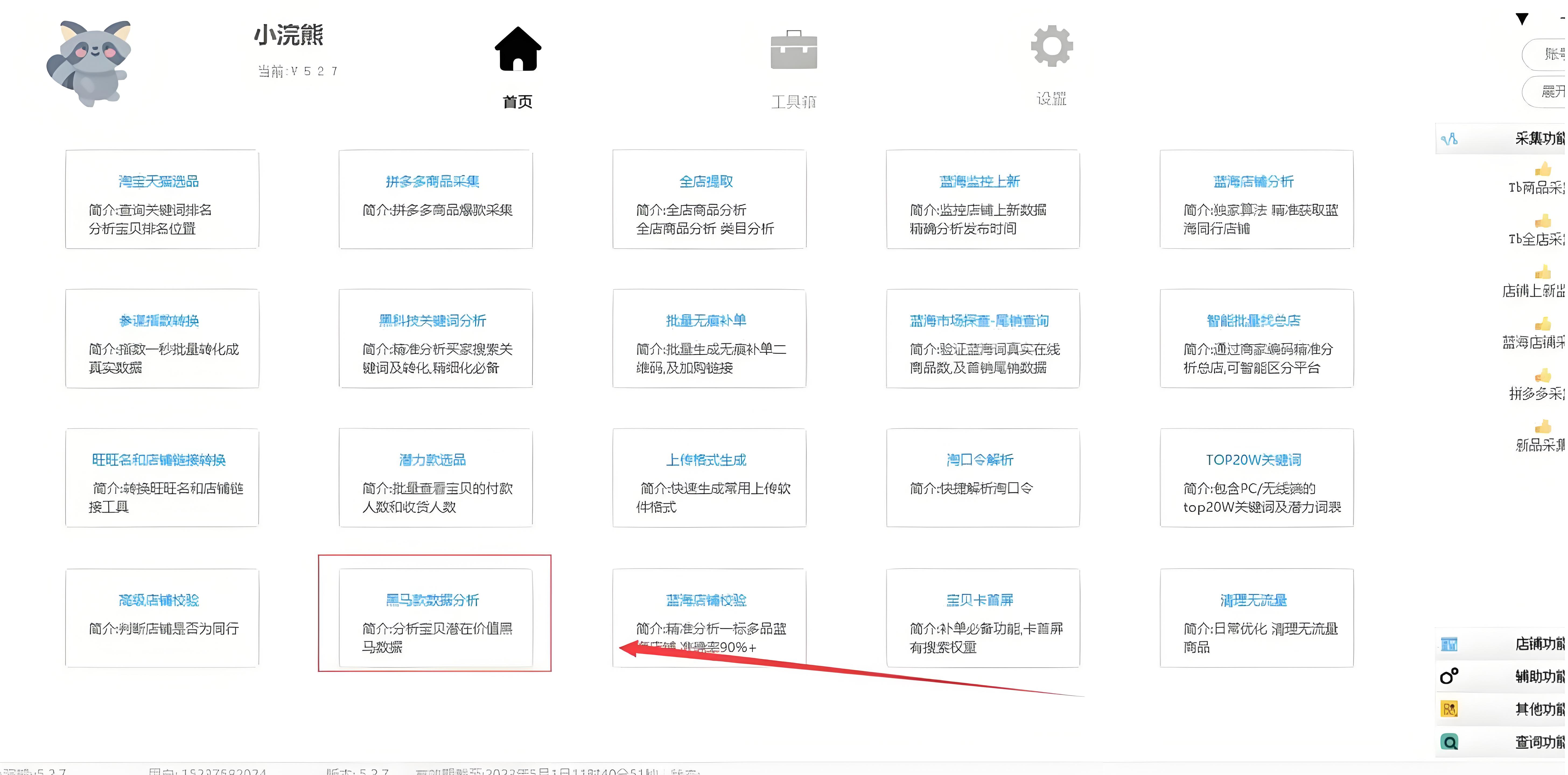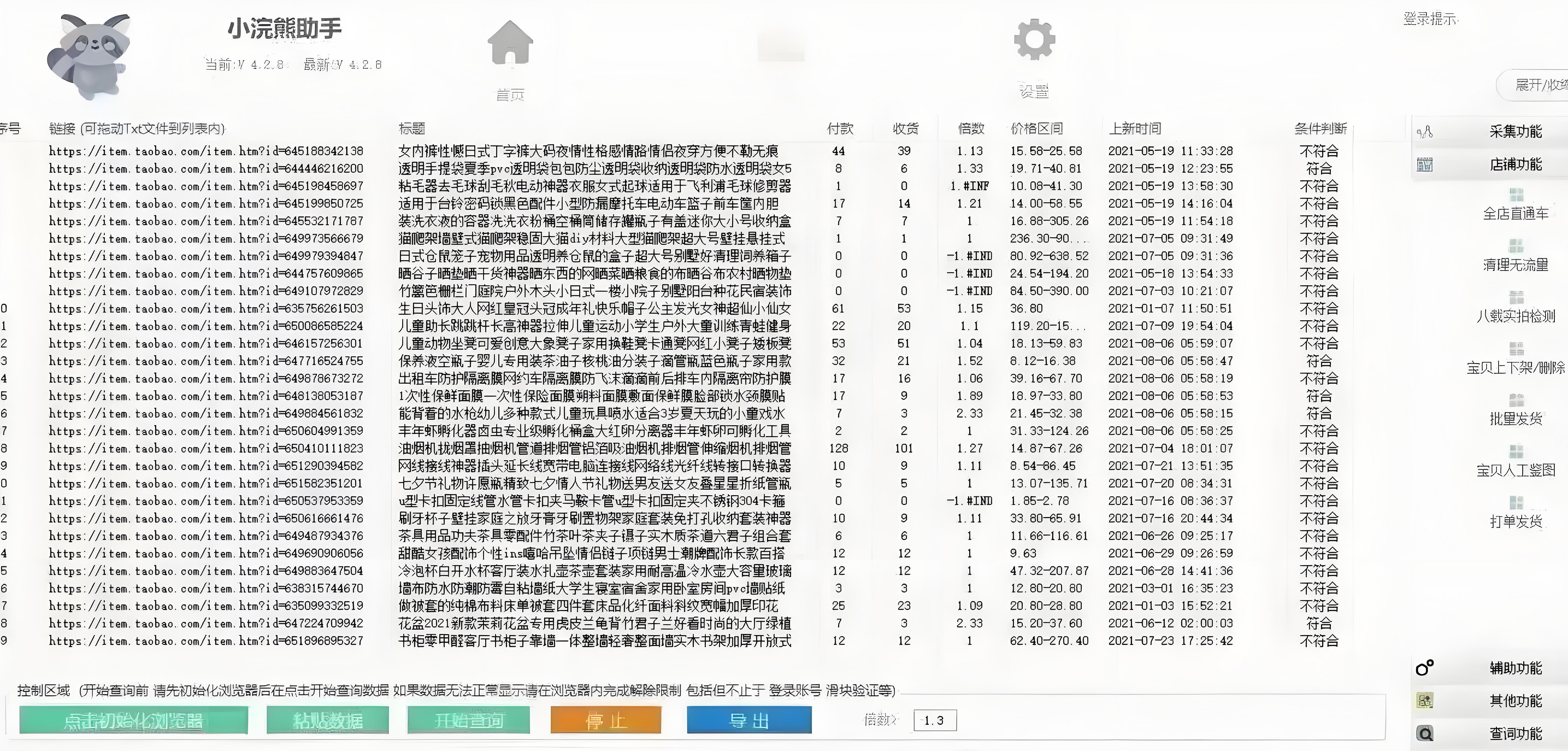 小浣熊 1.支持淘宝、天猫、拼多多多平台采集,可按关键词、店铺、类目批量抓取商品 2.同行店铺整店采集,分析对手运营和销售情况 3.蓝海潜力款监控上新,及时发现黑马产品和市场新品 4.抖音截流功能,对比淘宝抖音商品价格、主图、销量和佣金 5.1688关联打标,跨平台数据交互支持 6.批量改运费模板,快速优化店铺设置 7.数据可导出Excel,方便进一步分析处理 8.不绑定店铺,使用灵活,支持多场景运营需求