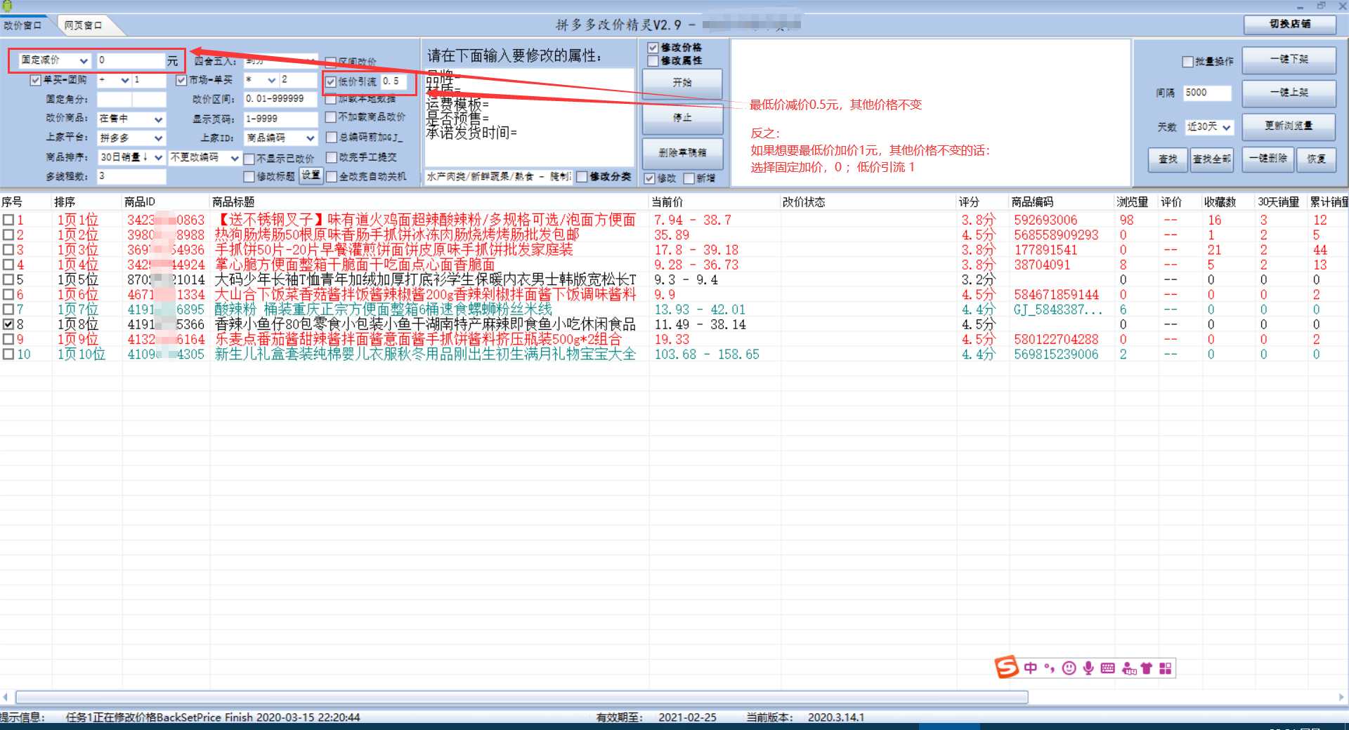旺宝改价精灵 1.批量改价加减价,突破8%加价,不限制加价幅度,支持固定加价、按比例改价、区间改价、自定公式改价等 2.可以修改在售中和草稿箱、已下架商品!草稿箱、已下架商品改完自动提交上架 3.清理无流量商品、检查重复商品、一键上下架 4.批量填充属性、批量修改预售、批量修改运费模板、批量修改标题品牌、添加白底图等 5.软件绑定电脑,不限制店铺数量,可后台最小化运行,不影响电脑使用