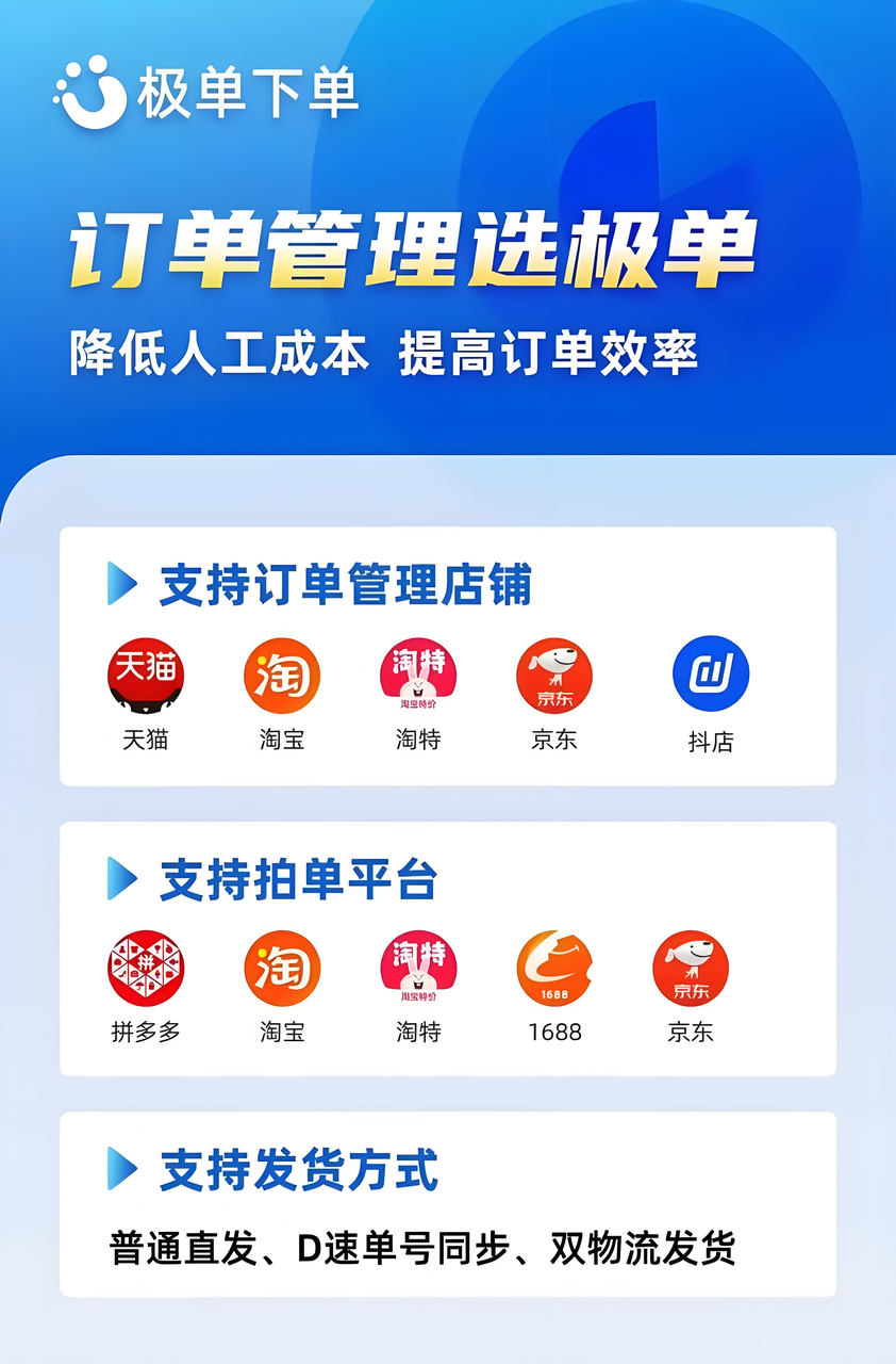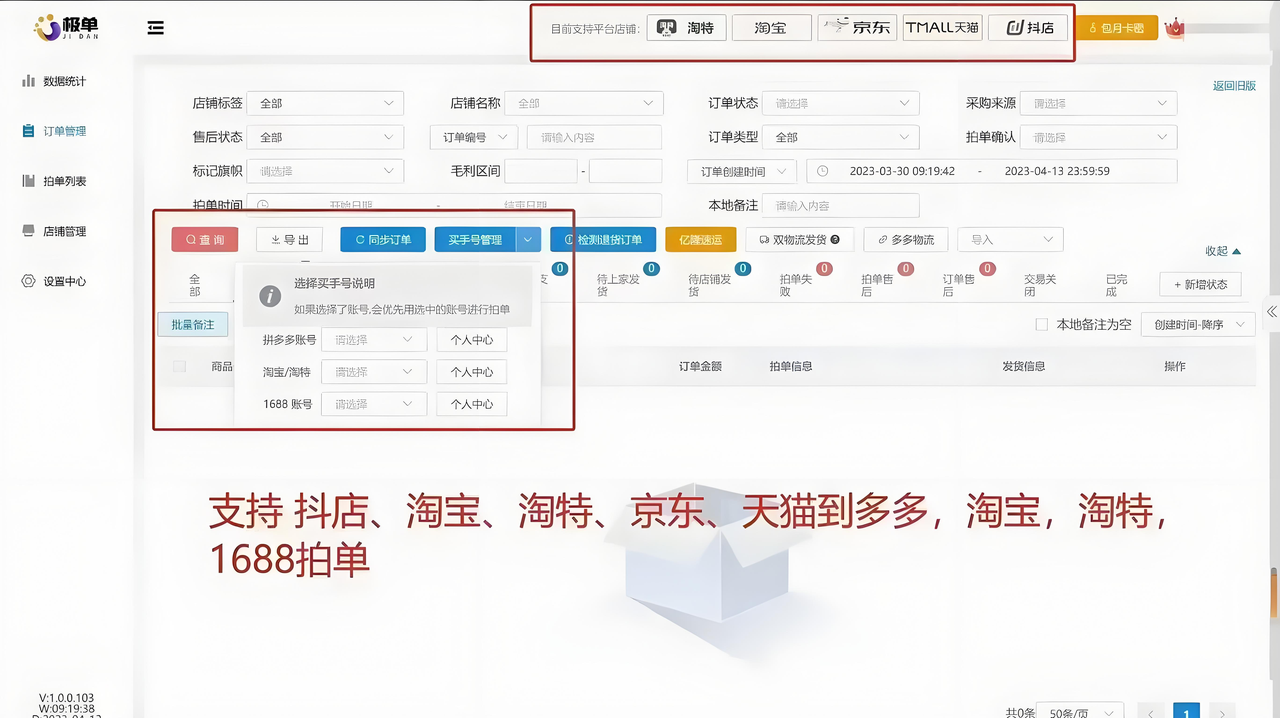 1.支持抖店、淘宝、淘特、京东、天猫、拼多多、1688多平台拍单