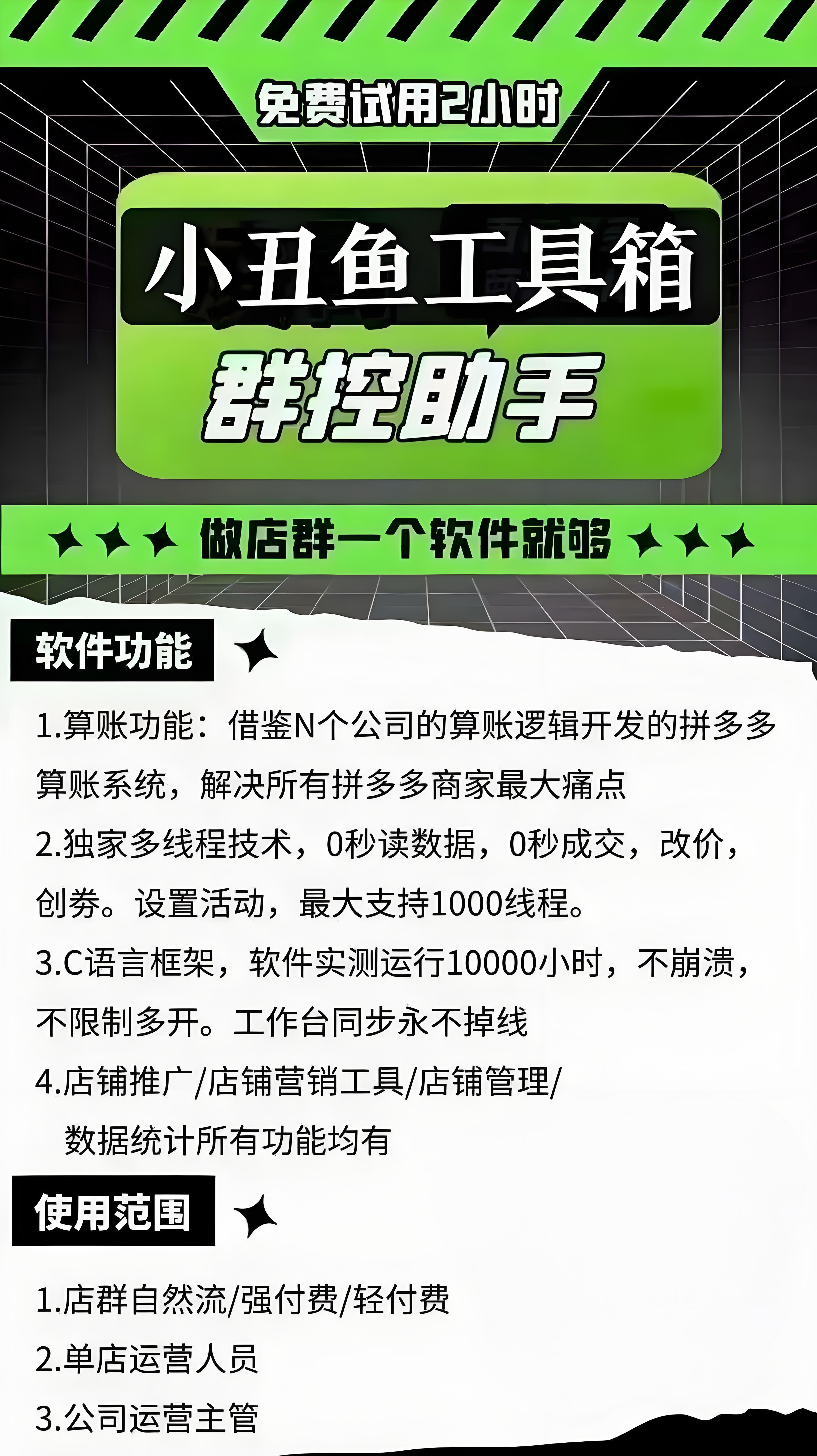 拼多多强付费必备,开车批量监控,全站推广监控,投产比监控,群控开车,群控设卷,群控店铺管理等。